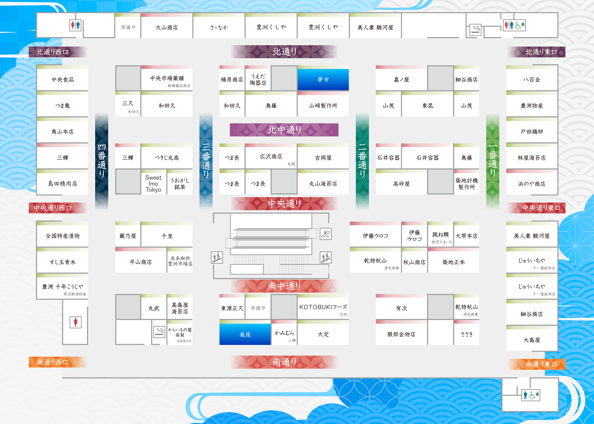 豊洲市場 水産仲卸売場棟4階 魚がし横丁マップ